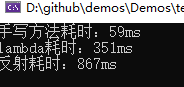 Console.WriteLine($"反射耗时:{sw.ElapsedMilliseconds}ms");