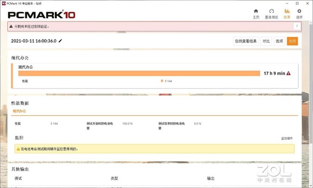 PCMARK 10现代办公模式续航测试:17小时9分钟
