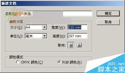 交流1.启动Illustrator CS2中文版,按Ctrl+N打开“新建文档”对话框,输入名称“八卦鱼”,设置画板大小为A4,颜色模式为RGB颜色,具体如图1所示。如果用于印刷输出,则颜色模式要选CMYK颜色。设置完毕单击“确定”按钮新建文档。