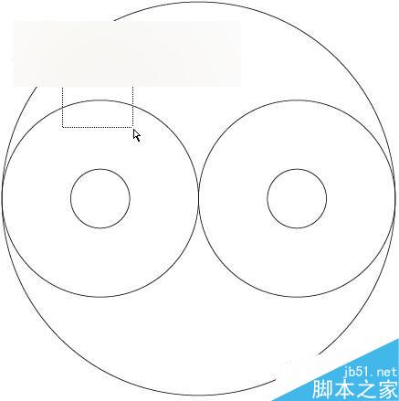 9.再将两个组合同时选中,按Ctrl+G将其组合到一起。也就是说,现在是四个圆成为一个组合。我们已经多次用到组合功能,在绘制图形时,最好能够熟练地运用组合功能。保持新组合的选中状态,按住Shift键的同时单击最大的圆,将所有的圆同时选中。