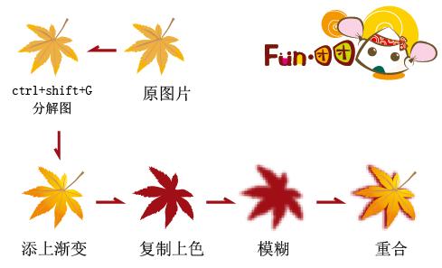 我们多复制几个小枫叶,调整大小、方向,放在底图中不同的位置,来营造活泼动态的秋天图片