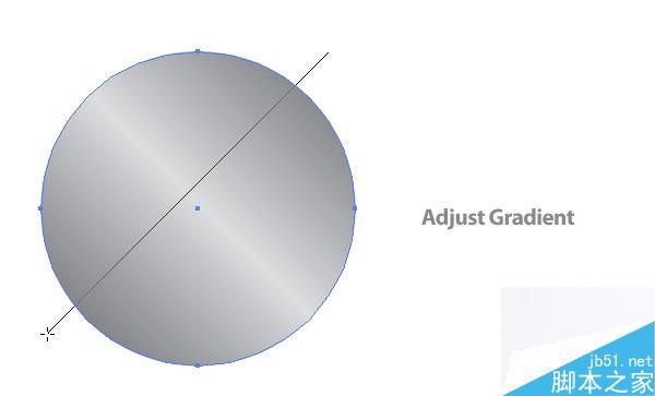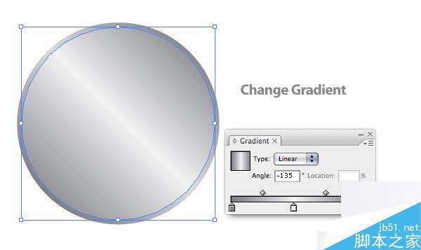 With the Gradient Tool (G), adjust the gradient by clicking and holding Shift, and drag from the top-right of the circle to the bottom-left. Now, the gradient should look like it is at a 45 degree angle.