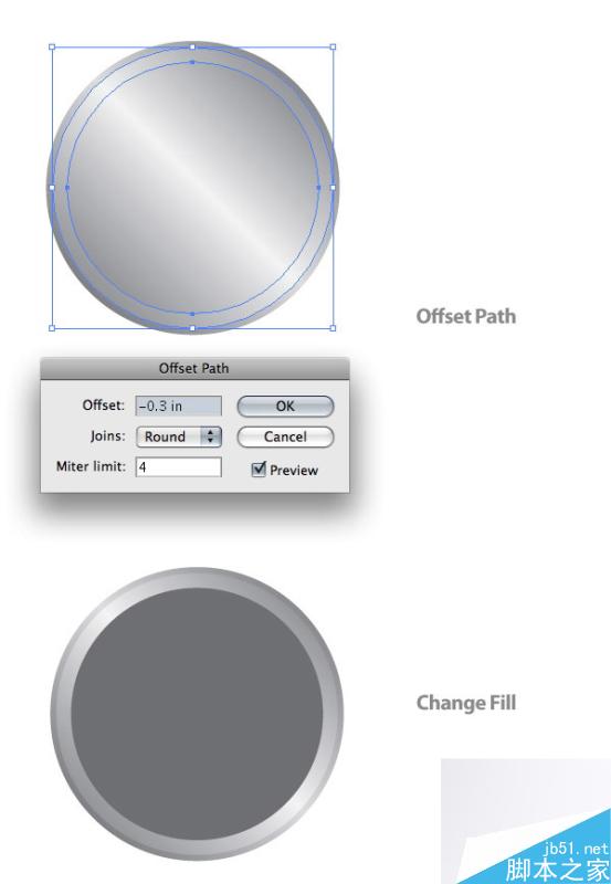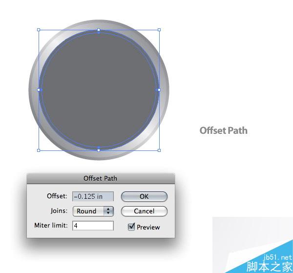 With the radial gradient ellipse selected, Offset the path at -.3 inches and change the fill color to a 50% black.