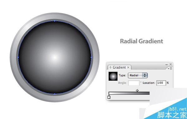 With the new ellipse, create a Radial Gradient from the Gradient Panel and change the first swatch to white and the second swatch to a 100% black.