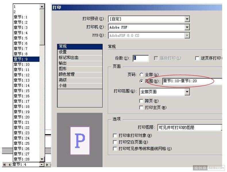 ⑥经过这样处理后,在状态栏显示的页码带有章节前缀,在打印指定页码时必须包括这个章节号,否则找不到指定页。