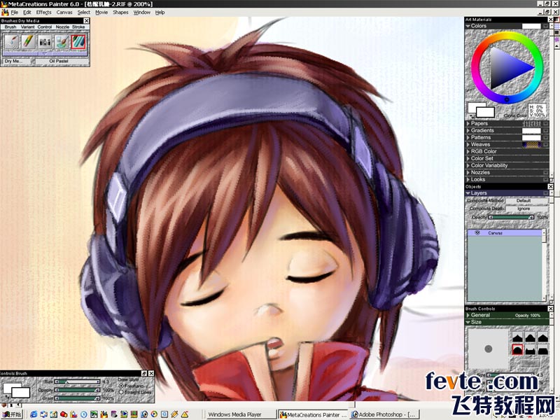 第一遍颜色 完成 以上几步的目的 是为了 确定画面各个部分的色调 为以后继续深入做好基础 这一步 比较轻松 不必画的很仔细 颜色画出边界也没关系接下来 开始从暗部开始深入刻画 这就要仔细点了 首先是画头部的暗色 包括头发
