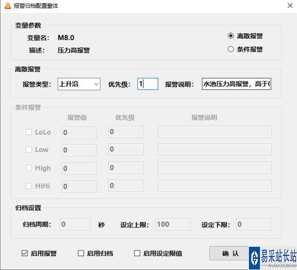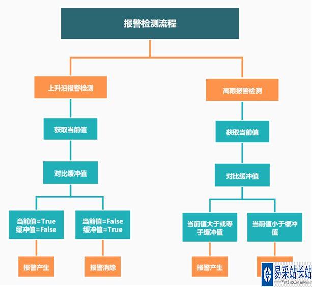 1、实际应用中,报警会分两种,一种是离散量报警(即开关量报警),另外一种是条件报警(即数据报警),而对于开关量报警,又分为上升沿检测和下降沿检测;对于条件报警,一般会存在高限报警检测、高高报警检测、低限报警检测、低低报警检测。