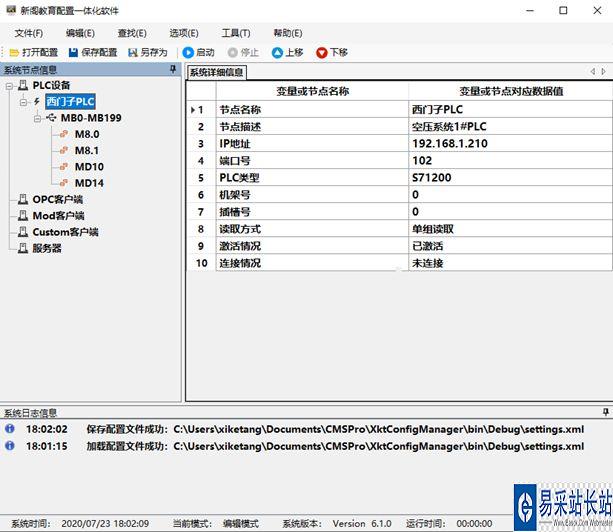 为了便于搭建整体环境,我这里使用星阁教育上位机配置软件(CMSPro)结合西门子S7-1200 PLC来进行功能测试,首先通过CMSPro配置一些变量,如下图所示: