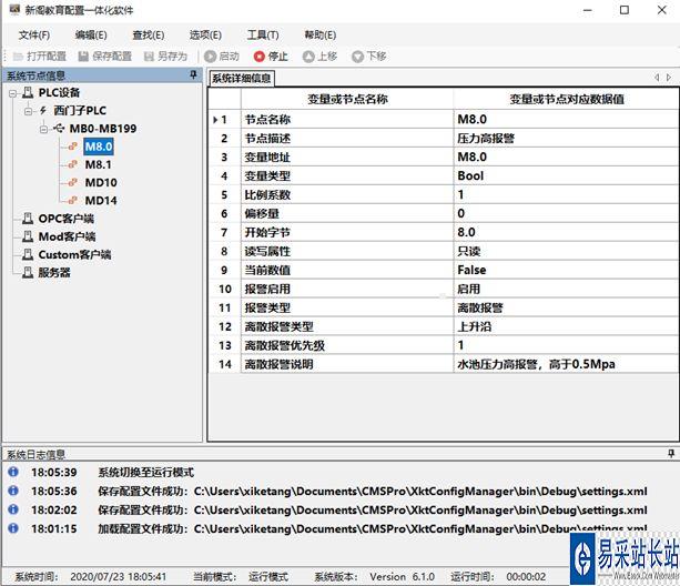 按照同样的方式,将其他变量进行相应的报警配置,配置完成后,点击保存并运行: