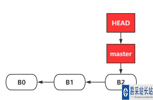 假设现在只有一个默认的 master 分支,并提交了3次,B0、B1和B2都是提交对象。