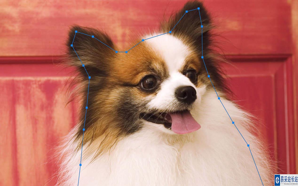 (1)切换到【钢笔工具】,模式为"路径",沿着狗狗的轮廓大致抠出主体部分,路径如下图所示。