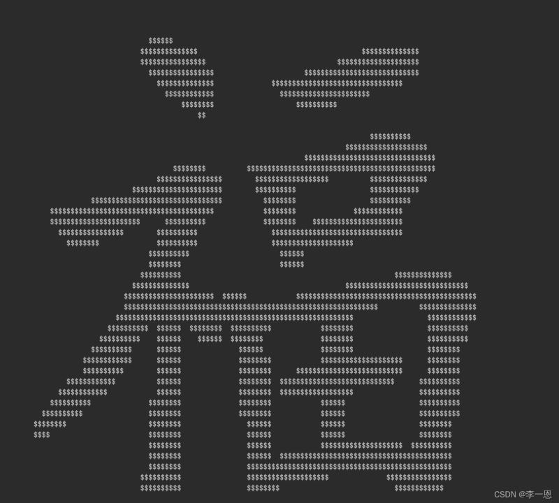 用 $ 堆积的福字,那寓意就是整一个财源滚滚啊,实现方式也是简单到离谱,不到20行代码,立刻上屏: