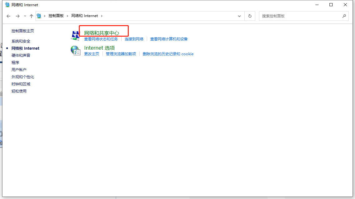 网络和 Internet窗口,点击“网络和共享中心” - “更改适配器设置”