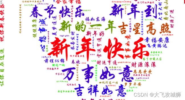 到此这篇关于Python爬取百度春节祝福语并生成心形词云的文章就介绍到这了,更多相关Python爬取祝福语内容请搜索易采站长站以前的文章或继续浏览下面的相关文章希望大家以后多多支持易采站长站!