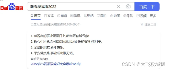(1)我爬取百度,搜索到关于春节祝福语,然后把这些祝福语存放到一个文件中。详细如下:
