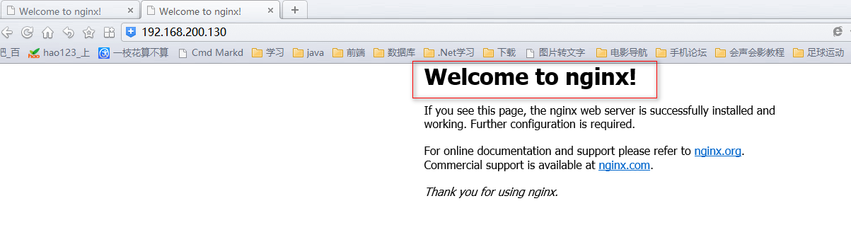 重启好Nginx后, 我们再来访问192.168.200.129 这台机器, 我么可以发现其实访问的是129.168.200.130这台机器.