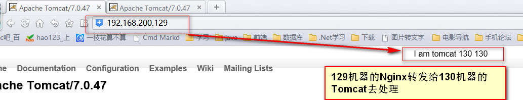 首先我们需要大家两台机器, 两台机器分别安装了Nginx和Tomcat, IP分别为: 192.168.200.129. 192.168.200.130