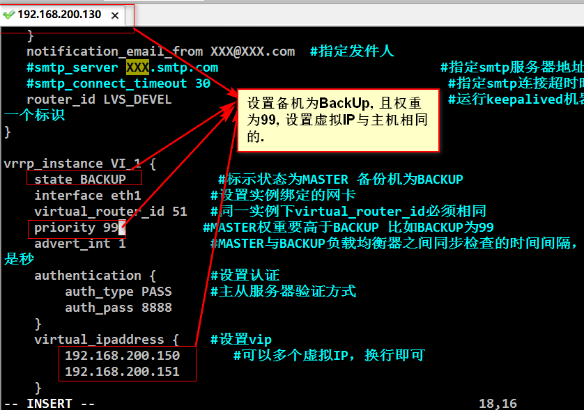 编辑Keepalived的配置文件: