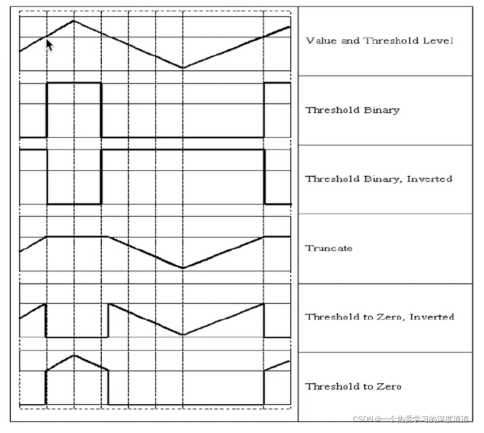 img:最好是灰度图像thresh:阈值maxVal:超过阈值,替换为maxValtype:有几种类型,THRESH_BINARY为二值化的类型