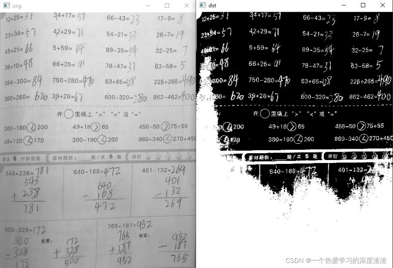 解决的问题:由于光照不均匀以及阴影的存在,只有一个阈值会使得在阴影处的白色被二值化成黑色;
