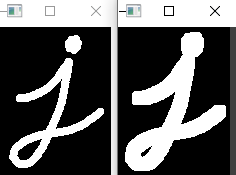上图为腐蚀后的结果,明显白色区域变小了,如果增大卷积核或增加腐蚀次数会使得腐蚀效果更明显;