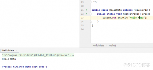 继续上代码,定义一个HelloMeta继承父类HelloWorld
