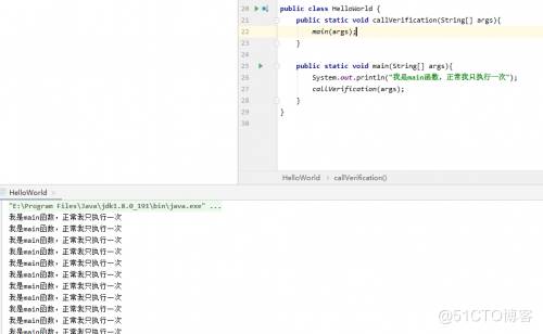 可以看到main方法被callVerification方法调用了,不过中间因为没有退出方法,导致死循环,程序崩了
