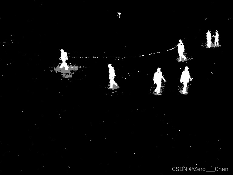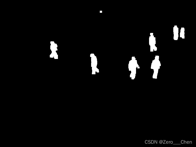 进行二值化、形态学等操作可以将行人作为一个独立个体分割出来。效果如图。