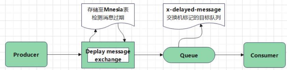 通过 x-delayed-message 声明的交换机,它的消息在发布之后不会立即进入队列,先将消息保存至 Mnesia(一个分布式数据库管理系统,适合于电信和其它需要持续运行和具备软实时特性的 Erlang 应用。目前资料介绍的不是很多)