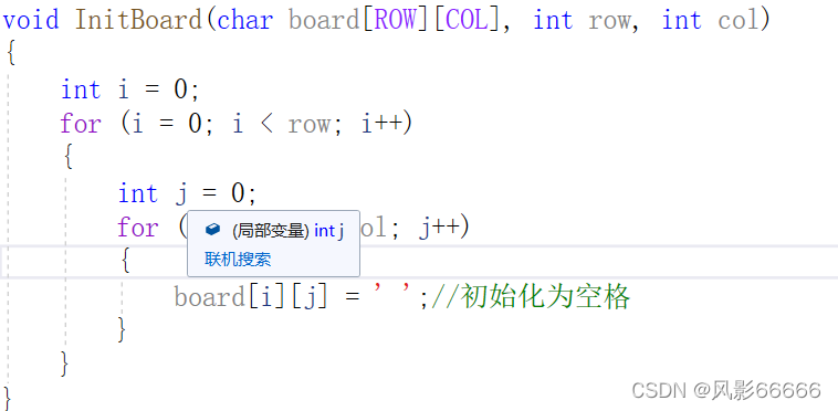 起初未下棋时,棋盘应该是空白的,所有将其全部元素初始化为空格