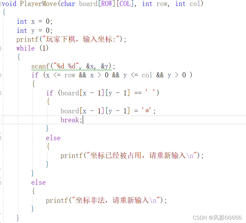 而下棋时,可能会出现写错坐标或者写的坐标已经有棋子的情况,所有采用循环
