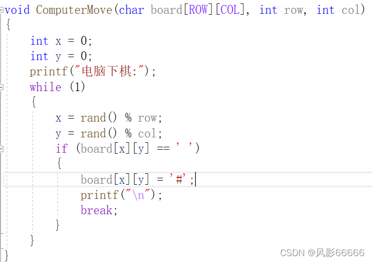 void ComputerMove(char board[ROW][COL], int row, int col)