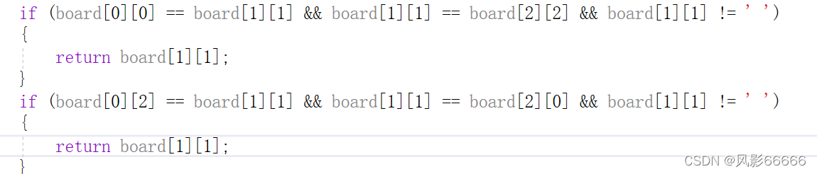 if (board[0][0] == board[1][1] && board[1][1] == board[2][2] && board[1][1] != ' ')