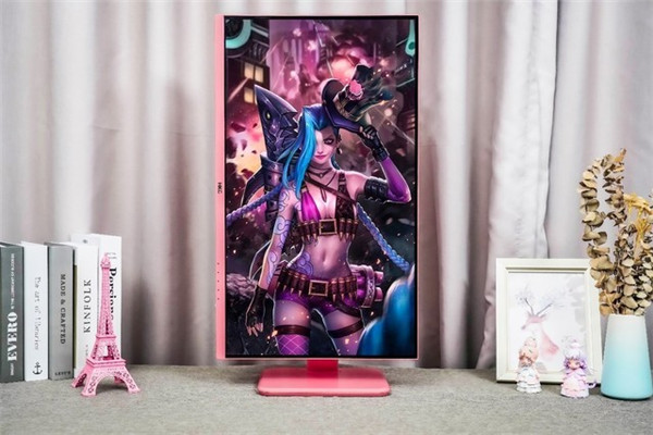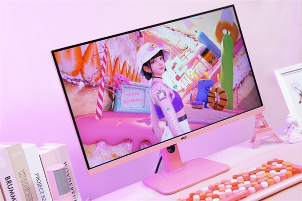 HKC PG27P3Q外观粉嫩可爱,少女感爆棚,非常符合女性玩家的审美。显示器边框采用三面窄边设计,使用户的视觉沉浸感增加不少。