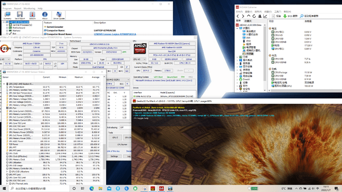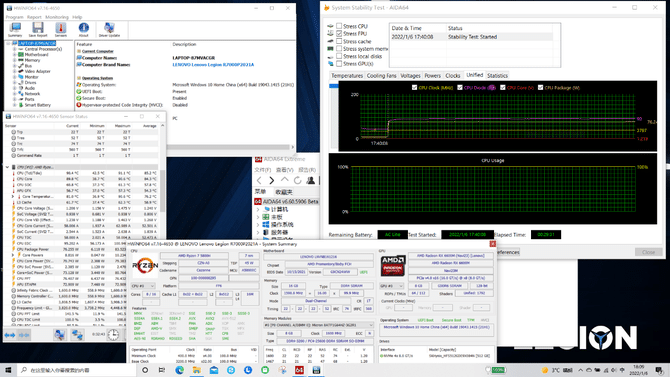 以下项目测试,均已将系统、硬件升级至最新驱动,操作系统为Windows 10家庭中文版,版本号为21H1。主板BIOS版本为G9CN22WW。100%满电连接电源,使用内置的联想电脑管家设置为散热模式为野兽模式,显卡模式为独显模式。环境温度在24-27°C之间。