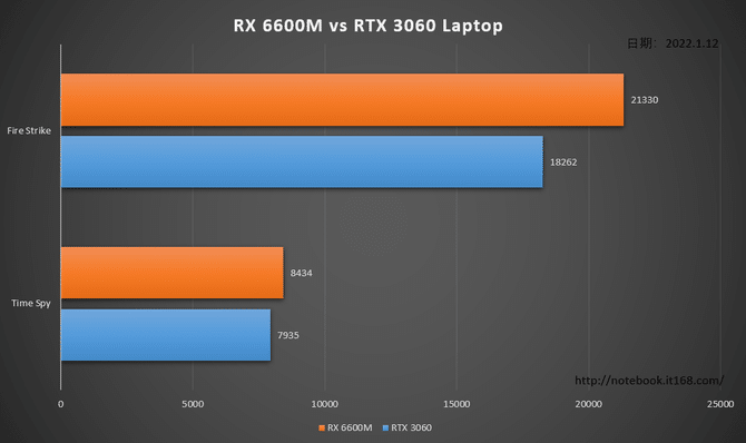 对比我们此前测试过的同等级搭载NV移动显卡的游戏本,开启狂暴模式后,RTX 3060 Latop功耗可达130W,但是在跟在RX 6600M进行对比后,其3DMARK上的多项跑分均不敌RX 6600M。可见,Radeon 6000系列移动显卡的时代已经到来了。