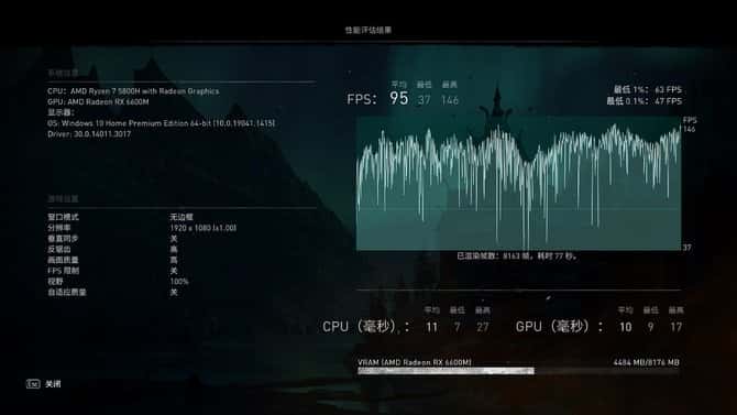 经过多款3A大作的性能测试,1080p分辨率最高画质下,RX 6600M平均帧率远高于60 FPS,运行流畅。