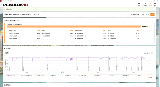通过以上各项目的运行可见,AMD锐龙7 5800H处理器和Radeon RX 6600M的搭配,表现相当强劲,加上联想拯救者R7000P 2021所提供的优秀散热加持,让双A性能尽情释放。如此强悍的不仅在游戏性能方面表现优异,也可以满足内容创造以及日常多任务办公等对性能的需求,而PCMark 10则可以模拟极为复杂的办公和内容创作环境并给出成绩。针对这款笔记本而言,常用基本功能得分为9266,生产力得分8829,数位内容创作得分10722,游戏得分17535。