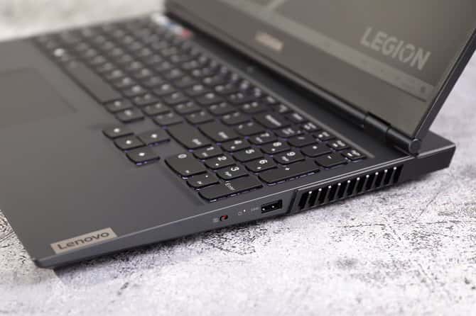 机身右侧的接口包括1个USB-A 3.2 Gen 1,加上机身后部的3个,整机一共提供了4个USB-A 3.2 Gen 1,可以连接外设键盘或鼠标,以及U盘、移动硬盘等。此外,还有一个摄像头电子开关,在网络游戏或视频聊天后,可以通过该开关彻底关闭摄像头,避免个人隐私泄露。