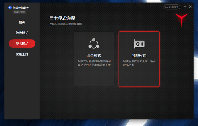 这款笔记本还支持独显模式,同样是针对游戏场景,能够获得持续的显卡性能释放。