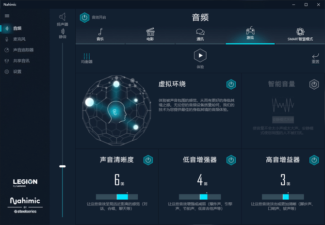 Nahimic音效设置,这里内置了包括音乐、电影、游戏等多种模式,还有使用耳机、扬声器终端,能够获得更为身临其境的视听享受。
