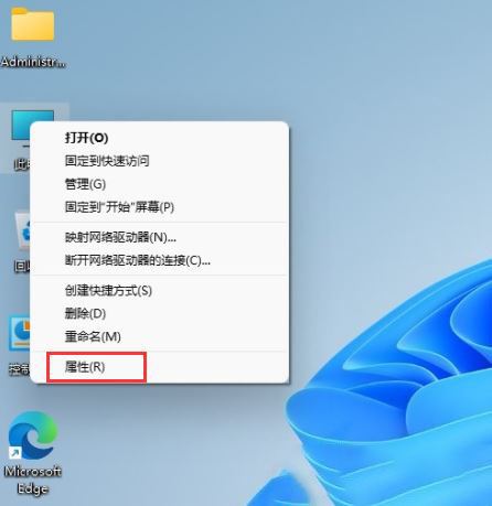 1,在Win11桌面此电脑上右键属性,如下图所示;
