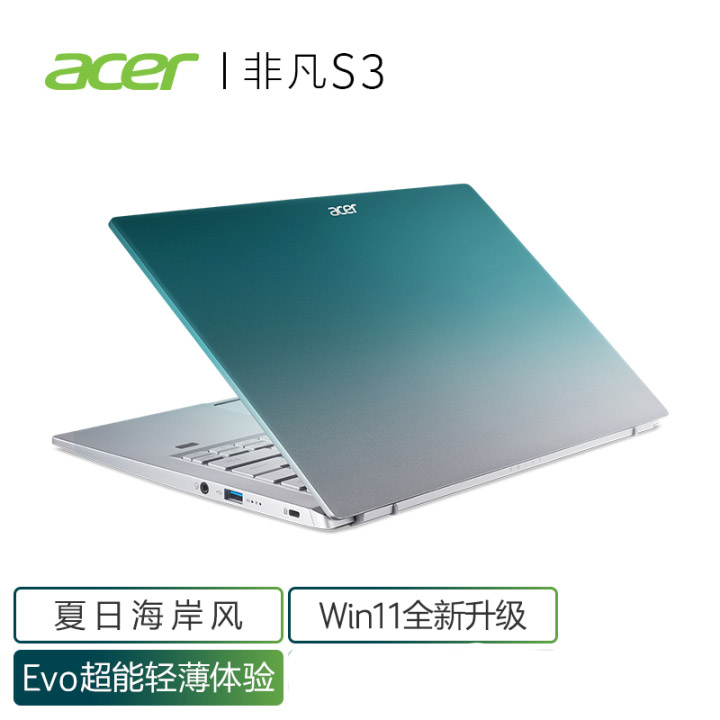 (4)宏碁非凡S3:intel i5—1135G7、集显、100%sRGB高色域+DC调光+1080P屏幕、16G内存(双板载)、512G固态硬盘、56Wh大电池、支持65W PD快充,背光键盘、指纹识别等。