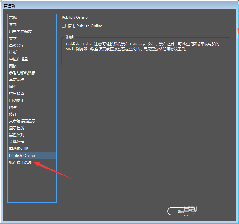 点击左侧中的标点挤压选项