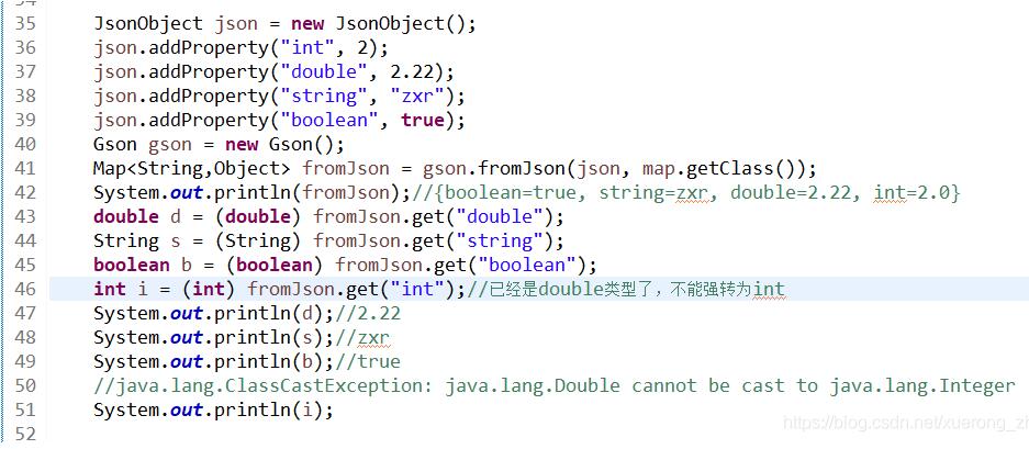 问题:从前端页面传递过来的json串,后台能map接收,再利用map的get()方法获取相应的属性值,这时当属性类型为int或者long类型时会出现转换异常。
